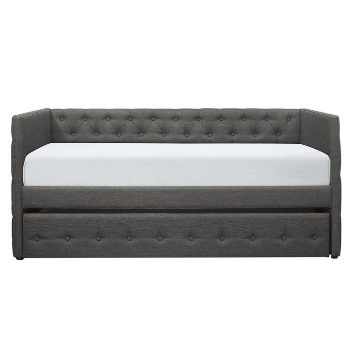 Modern traditional styling blends classic accent and clean lines to create the look of the Batavia Collection. Dark gray fabric is accented with button tufting that lends distinct visible texture to the profile of the daybed. Whether used for sleeping or relaxing, the daybed’s design allows for placement in a number of room sizes and configurations, while the under-bed trundle pulls out to accommodate your additional sleep space needs.
