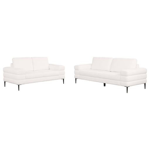 This reclining sofa and loveseat set puts the win in winning. Its waterfall back design and doubly plump pillow top arms team up with soft chenille...