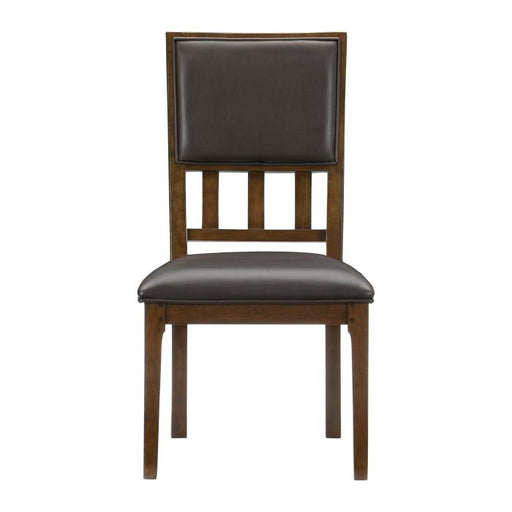 Frazier Park by Homelegance Dark cherry finish Wood frame Vinyl upholstered seat and back Assembly required Sold in set of 2 20 x 23 x 39H