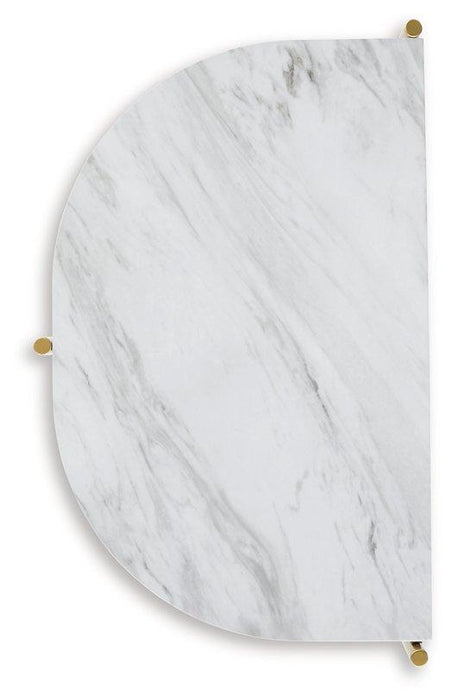 Add a bright spot to your contemporary space with this side table. The replicated Carrara marble top provides a chic sophistication while a goldtone finish on the metal frame heightens the modern aesthetic.